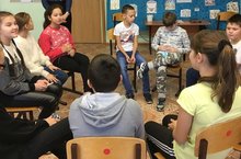 В школе начал работать пришкольный лагерь "Кояшкай". Утро началось с зарядки и линейки, затем были проведены игры на сплочение детей. Дети с большим интересом поиграли