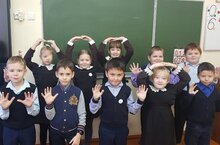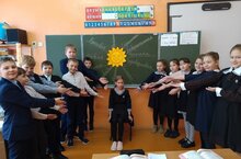 В рамках Всероссийской недели психологии в начальной школе было проведено занятие с целью развития уважительного отношения к себе и окружающим. На кадре упражнение "Солнышко"