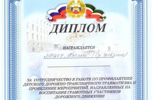 Диплом за сотрудничество в работе по профилактике ДДТТ 27.09.2017