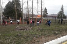 Учащиеся и педагоги школы приняли участие в экологическом субботнике. Они привели в порядок пришкольную территорию, родник, а также территорию у обелиска погибшим воинам.