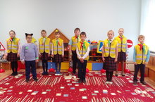 Члены отряда ЮИД "Светофорик" выступили перед воспитанниками детского сада с агитбригадой о световозвращающих элементах.