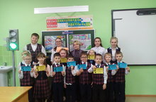 Члены школьного отряда ЮИД "Светофорик" для учащихся 1 класса провели мероприятие "Посвящение в юные пешеходы"