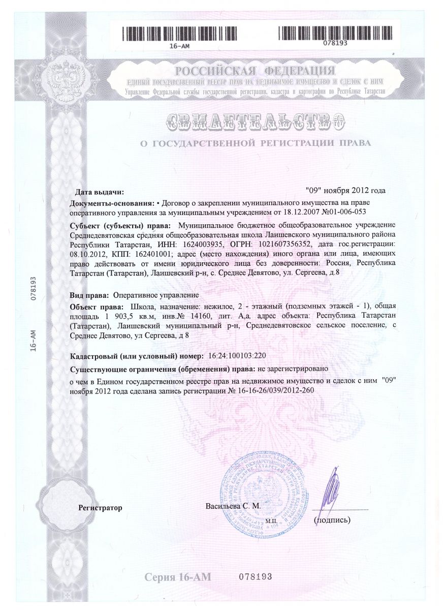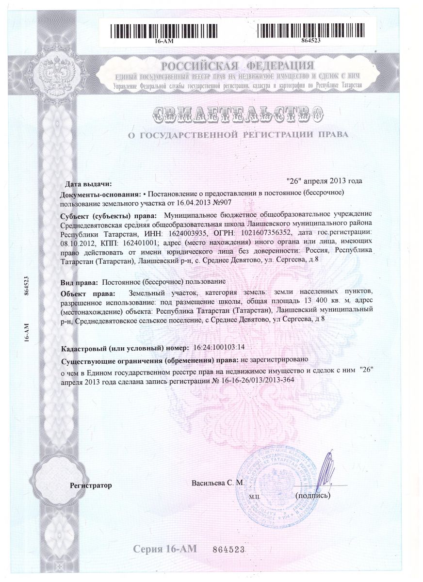 | Адрес: | 422614, Республика Татарстан, Лаишевский район, с. Среднее Девятово, ул. Сергеева, д. 8 |