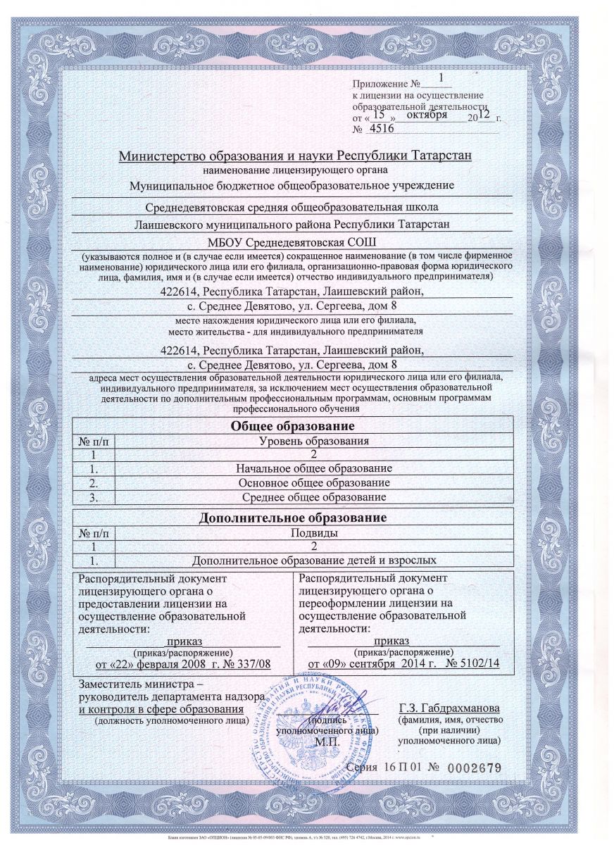 Муниципальное бюджетное общеобразовательное учреждение Среднедевятовская средняя общеобразовательная школа Лаишевского муниципального района Республики Татарстан