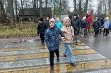 По дороге в лес ребята повторили правила поведения на дороге, вспомнили дорожные знаки и на практике потренировались, как правильно переходить дорогу.