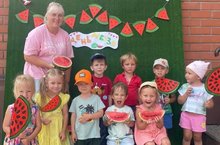 "Арбузик"- так называется очередной тематический день в Ромашке. Сегодня герой дня - большая сочная ягода. Ежегодно день арбуза отмечают 3 августа. Сегодня ребята мастерили яркие «арбузные» подделки, отгадывали загадки. День арбуза – праздник, который объединил всех вокруг вкусной ягоды. Это был прекрасный день, наполненный улыбками, радостью и вкусом лета. Пусть арбуз всегда остается символом счастья и праздника для всех!