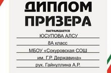 Ученица 8 а класса Юсупова Алсу, стала призером Республиканского конкурса рисунков и видеороликов "Буду бдительным на льду" , в номинации "Рисунок".