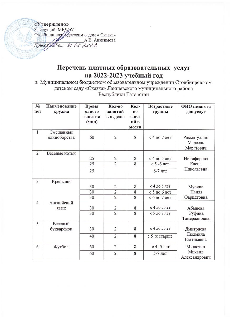 Перечень платных образовательных услуг на 2022-2023 учебный год