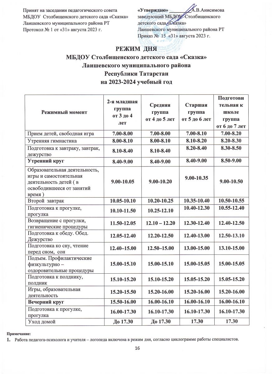 Режим дня на 2023-2024 учебный год