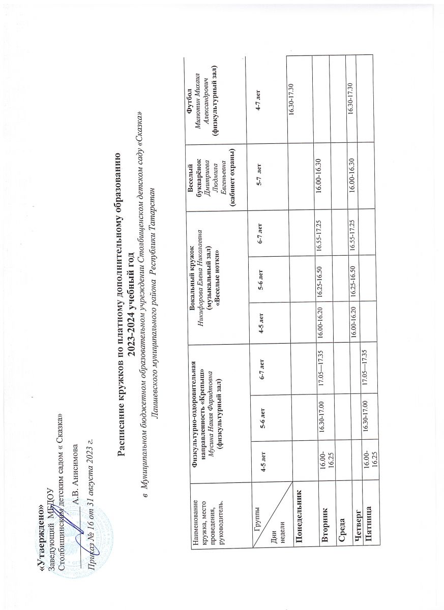 Расписание кружков по дополнительным образовательным услугам 2023-2024 учебный год