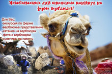 Приглашаем Вас и ваших детей в дни детских каникул и новогодних праздников отдохнуть в замечательном уголке живой природы и получить незабываемые впечатления от радости общения с уникальными представителями животного мира верблюдами-бактрианами.