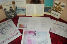 В школе ко Дню матери, библиотекарь оформила книжно-иллюстративная выставку "Моя любимая мама."