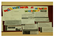 С 9.12.13 по 16.12.13 в школе проходила неделя математики. В рамках недели прошли: уроки занимательной математики «Считай, смекай, отгадывай», «Загадочное число 7», КВМ «Своя Игра», Математическая олимпиада (найди карточки), Игра «Кто хочет стать миллионером?», а также конкурс математических газет.