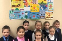 Патриотическая выставка рисунков ко Дню защитника Отечества учащихся начальных классов.