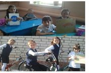 Благоустройство территории школьной площадки силами учащихся 2 класса под руководством классного руководителя Вороновой Ирины Петровны. Использовали в работе МЁТЛЫ, сделанные из пластиковых бутылок своими руками.