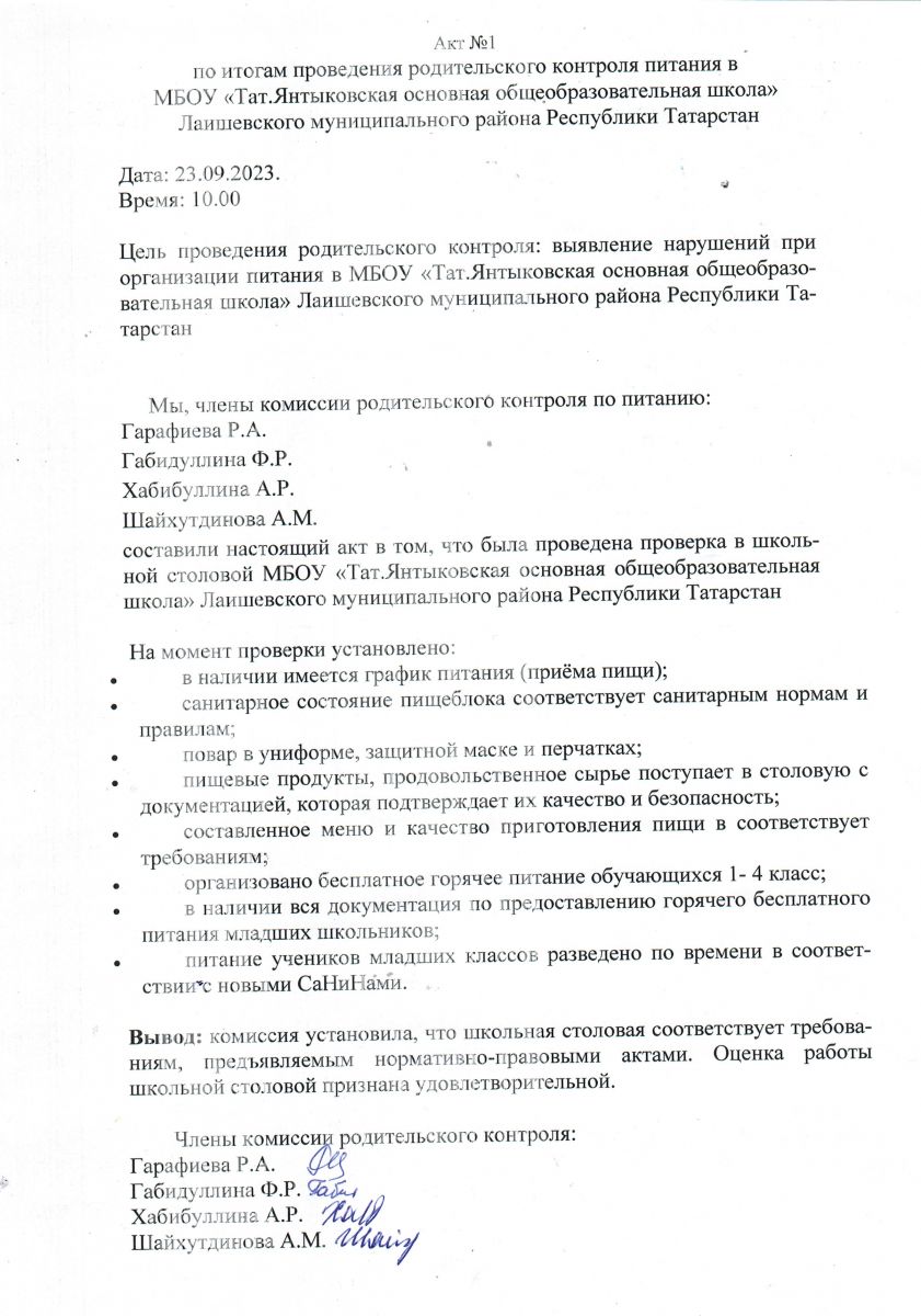 Акт №1 по итогам проведения родительского контроля питания.jpg