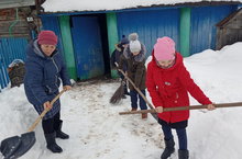 Укучылар тыл ветераны Хәтирә апаның хәлен белергә төштеләр. Өй кырыендагы карны чистартып ярдәм иттеләр.