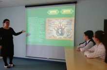 Китапханәче Насырова Ә.Х. Лаеш районына 90 ел уңаеннан укучыларны "Лаеш районы тарихы" ("История Лаишевского края") китабы белән таныштырды