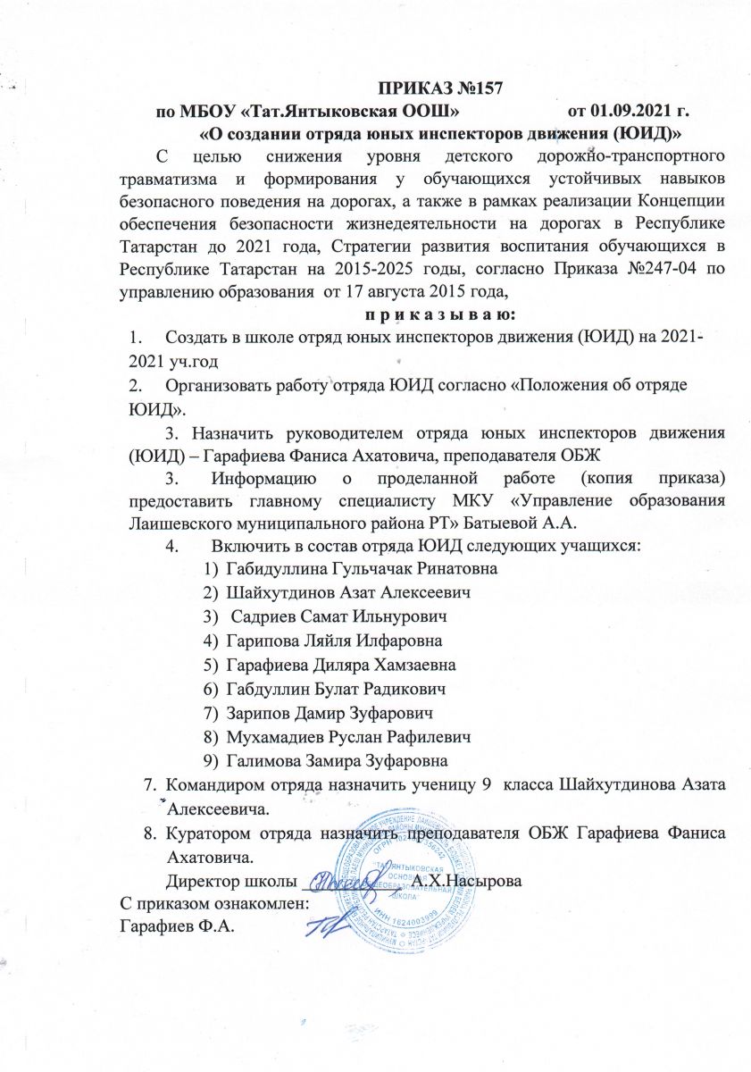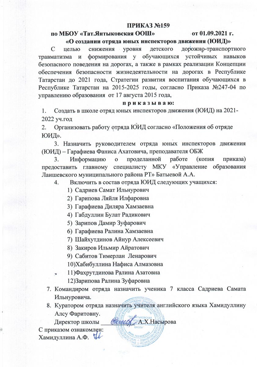 Приказ о создании отряда ЮИД МБОУ "Тат.Янтыковская ООШ" на 2021-2022 учебный год.jpg