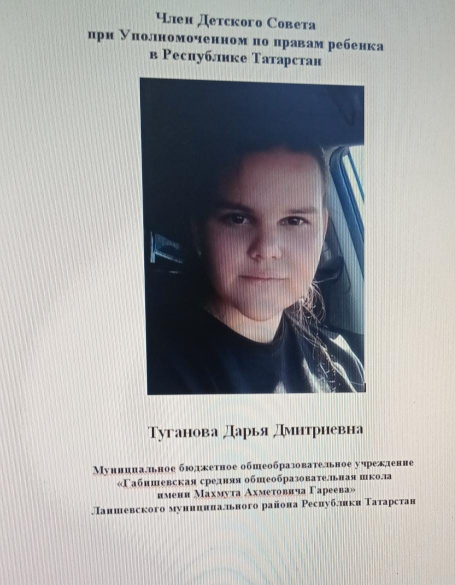Член Детского Совета при Уполномоченном по правам ребенка в РТ (Туганова Дарья Дмитриевна).jpg