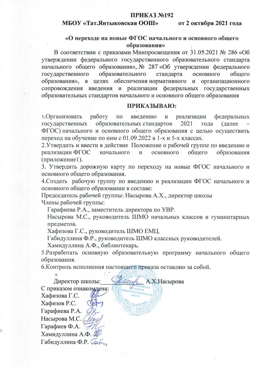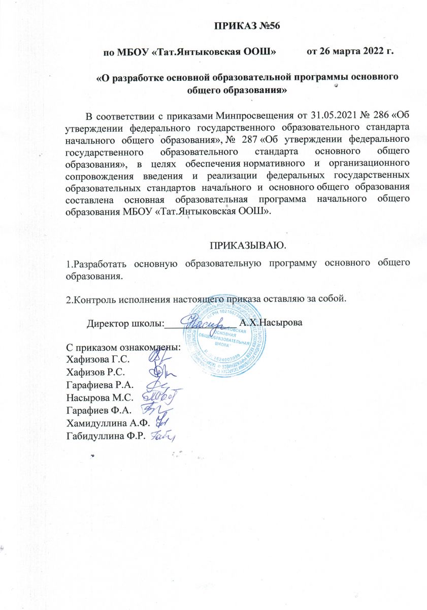 Приказ о разработке ООП ООО МБОУ Тат_Янтыковская ООШ.jpg