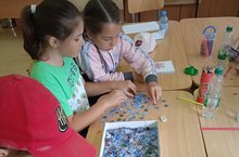 Каждый день в нашем лагере проходят интересные, веселые и развивающией мероприятия. Сегодня ребята "соревновались" за столом собирая пазлы.
