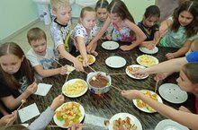 В честь финального дня лагеря учителя и родители организовали ребятам праздничный стол. А стол необычный, а с настоящим шоколадным фондю и угощениями. Ребяты были приятно удивлены и рады.