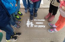 Сегодня Юные Инспекторы Движения совместно с ОГИБДД района, провели акцию «Возьми меня за руку». Дети рисовали с помощью трафарета перед пешеходным переходом напоминание родителям, что дорогу нужно переходить, взяв ребенка за руку.