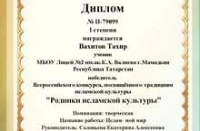 Вахитов Тахир, ученик 5А класса, стал победителем Всероссийского конкурса, посвященного традициям исламской культуры.