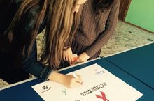 SMS-дети «Юность» провели Акцию «Красная ленточка». SMS-ки прикрепляли учащимся, учителям красные ленточки ( со значком СТОП ВИЧ/СПИД) –символ осознания людьми возможности проблемы СПИДа. А так же сделали плакат для подписей #СТОПВИЧСПИД.