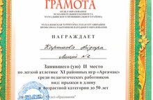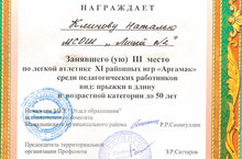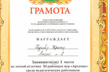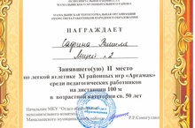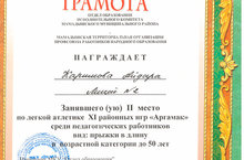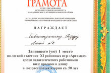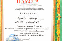 награждена грамотой за 1 место по легкой атлетике