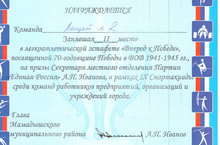 Грамота за 2 место. 12.05.2015