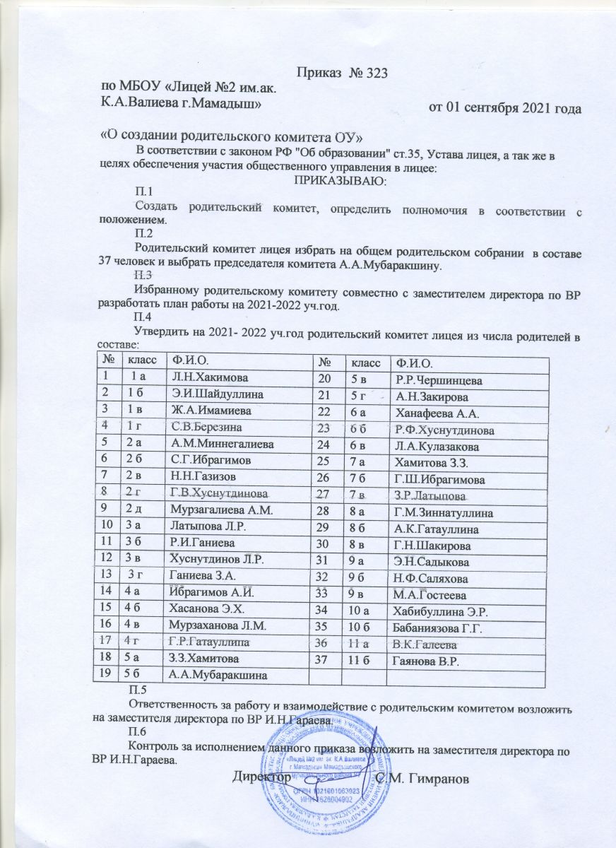 Директор лицея Гимранов С.М. - место нахождения - 422190, Республика Татарстан, Мамадышский район, г. Мамадыш, пер. Текстильный, д. 5, телефон: +7(855)-633-20-31, е-мail: s2.mam@tatar.r
