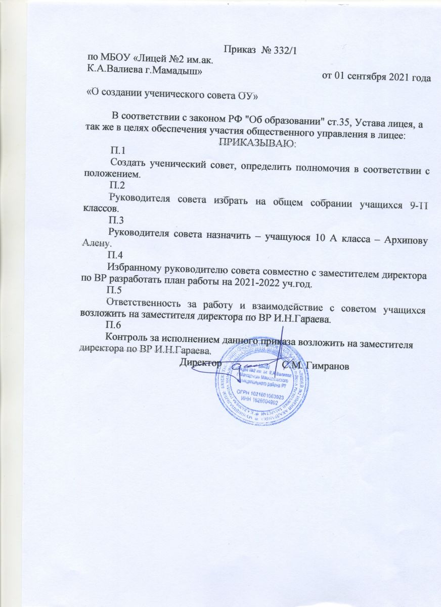 | Короткое название: | МБОУ "Лицей № 2 им. ак. К.А. Валиева г. Мамадыш" |