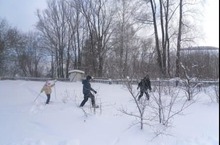 Без дәресләрдән соң мәктәп янындагы бакчада рәхәтләнеп чаңгыда шуабыз. Беренчедән, "Олимпиада-100" ярышының кышкы төрләренә һәм чаңгычылар көненә әзерләнсәк, икенчедән, вакытыбызны күңелле үткәрәбез.