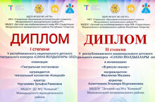 Подведены итоги V Республиканского национального детского театрального конкурса "Сәхнә йолдызлары - 2022". Наш театральный коллектив "Кояшкай" под руководством Нургалеевой З.Р. награждены дипломом I степени, а также воспитанница Фазлиева Мадина получила диплом II степени, руководитель Ахметшина Э.Н. Поздравляем!!!