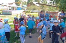 Сегодня в нашем саду прошел праздник Петров день. В гости к ребятам пришло Солнышко, Лягушка и Кикимора. Было много игр, танцев и песен.