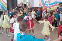 Сегодня в ДОУ прошло развлечение "Хоровод Поволжья.", цель которого, приобщать детей к традициям народов Поволжья; расширять знания детей о традициях этих народов; развивать желание выступать на мероприятии, участвовать в исполнении песен, игр, танцев; приобщать детей к творческому самовыражению, свободному общению со сверстниками, воспитывать любовь к Родине, чувство толерантности к народам, населяющим Поволжье. / Бүген балалар бакчасында "Идел буе әйлән-бәйләне" дигән тамаша узды.аның максаты-балаларны Идел буе халыклары традицияләренә җәлеп итү; балаларның бу халыкларның гореф-гадәтләре турындагы белемнәрен киңәйтү; чарада чыгыш ясау теләген үстерү, җырлар, уеннар, биюләрне башкаруда катнашу; балаларны иҗатта үз-үзләрен күрсәтү, яшьтәшләре белән ирекле аралашу, Ватанга мәхәббәт, Идел буенда яшәүче халыкларга толерантлык тәрбияләү.