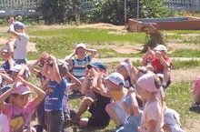 Сегодня у ребят прошло увлекательное развлечение «В гости к солнышку». Ребята пели песни про лето, участвовали в забавных эстафетах, отгадывали загадки, дружно танцевали под веселую музыку. Все участники получили заряд положительных эмоций и бодрость на весь день!/Бүген балалар өчен «Кояшка кунакка " дигән мавыктыргыч күңел ачу чарасы узды. Балалар җәй турында җырлар җырладылар, кызыклы эстафеталарда катнаштылар, табышмаклар чиштеләр, күңелле музыка астында бергәләп биеделәр. Барлык катнашучылар да уңай эмоцияләр һәм көн буена күңел күтәренкелеге алдылар.
