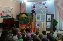 В рамках районной тематики открытых мероприятий "Я талантлив" в детском саду провели развлечение «Кому - сказка, кому - пляска, кому - песенка». Воспитанники подготовительной группы показали не большой концерт для детей старшей и средней группы. Музыкальным руководителем были подготовлены концертные номера: песня «Маленькая страна», «Детски сад», танцы «Мы маленькие звезды», «Карапузы», «Мы маленькие куколки». В конце развлечения большой заряд радости для воспитанников и гостей принес клоун «Шурик». Он играл, шутил, танцевал с детьми. Угостил детей маленькими сладостями, но еще большая радость для детей была фото на память вместе с клоуном.