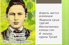 Бүген - бөек шагыйребез Габдулла Тукайның туган көне. Татар шигъриятендә Габдулла Тукай- иң якты йолдыз. Ул калдырган иҗат мирасы һәм рухи яктылык- безнең мактанычыбыз һәм горурлыгыбыз. Аның исеме татар мәдәниятенең үткәне, бүгенгесе һәм киләчәге белән мәңгегә бәйле. Тукайның үз милләтенең киләчәге, теле , мәгърифәте, сәяси үсеше өчен җан атып яшәгән...