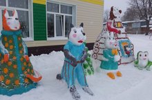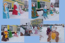 Погода стояла чудесная, снега было предостаточно, творческих идей - хоть отбавляй. Лепили и украшали мы наши фигуры с огромным энтузиазмом, испытывая при этом, как наши дети, неподдельную и искреннюю радость и увлечённость творческим процессом. Сам процесс очень увлекателен, потому что, когда вы включаете свою фантазию, поделки из снега могут превращаться в неожиданные шедевры. А рядом со всеми снежными постройками появилась большая горка,которую быстро испробовала детвора.Снежные постройки на нашем участке были сделаны в стиле Африки, ведь обезьяна обитатель жарких стран.