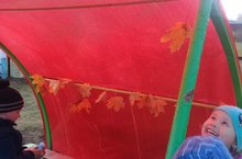 Осень - самое красивое и нарядное время года. Жаркие летние дни уступили место осеннему ветру, желтеющей листве и моросящему дождику. Осень радует нас теплыми деньками и хорошей погодой, поэтому к этому периоду, как и к другим временам года, мы тоже украшаем веранды, чтобы показать детям всю красоту осени. Главное в осеннем украшении, создать подходящую цветовую палитру - желтый, красный, оранжевый, коричневый цвета создают радостное настроение. На нашей веранде, "пожелтели листья".