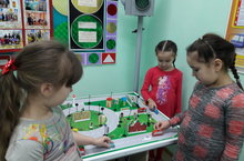 В уголке по ПДД дети играют, а заодно получают знания о том, что на улицах есть дома, большие и маленькие, тротуары, улица. Во время игры с машинами они замечают, что машины бывают легковые и грузовые, усваивают правила поведения в транспорте, при переходе дороги, на тротуаре, знакомятся с сигналами светофора. Воспитатель Хабибрахманова Эльмира Фаридовна обучая детей правилам дорожного движения считает, что это обязательная часть воспитательно-образовательного процесса в детском саду.