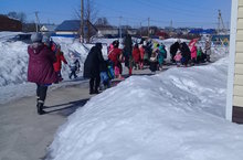 30 март көнне бакчада гадәттән тыш хәлләр очрагы булганда эвакуация чарасын кабатлап карау булды. Барлык балалар да киенеп тәрбиячеләре белән тиз арада урамга чыгып тезелеп бастылар.