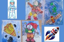 Дети старше-подготовительной группы нарисовали рисунки к Дню Космонавтики.