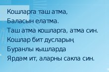 Без уйныйбыз, уйныйбыз, Якты көннән туймыйбыз. Кулны кулга чаба-чаба Көләбез дә җырлыйбыз. 20.01.2018