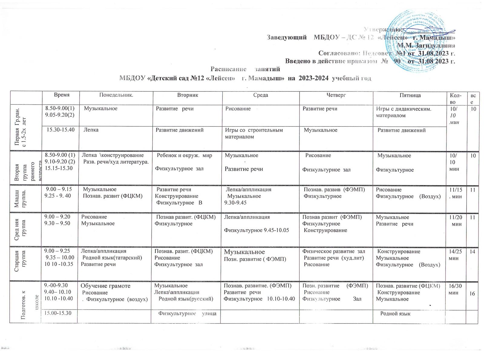 Годовой календарно-образовательный график МБДОУ-ДС №12"Лейсен" г.Мамадыш"на 2023-2024 гг