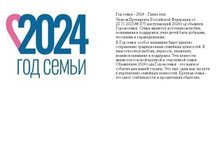 Год семьи - 2024 - Гаилә елы. Указом Президента Российской Федерации от 22.11.2023 № 875 наступающий 2024 год объявлен Годом семьи. Семья является источником любви, понимания и поддержки, учит детей быть добрыми, честными и справедливыми. В Год семьи особое внимание будет уделено сохранению традиционных семейных ценностей. К ним относятся любовь, верность, уважение, взаимопонимание и поддержка. Эти ценности являются основой крепкой и счастливой семьи. Объявление 2024 года Годом семьи - это важное событие для нашей страны. Это еще один шаг на пути к укреплению семейных ценностей. Крепкая семья - это залог стабильности и процветания общества. 01.01.2025