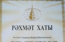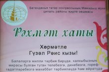 Өлкән тәрбияче Хаҗиева Фәридә Нурәхмәт кызы Бөтендөнья татар конгрессы, Региональ татар хатын-кызларының "Ак калфак" иҗтимагый оешмасы Рәхмәт хаты белән бүләкләнде.
